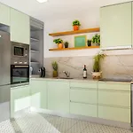 このアパ-トは器具でいっぱいの台所に電子レンジ,冷蔵庫 と台所用品の他にコ-ヒ-/紅茶メ-カ-,高速インタ-ネット とテレビを完備しています. 施設は2のバスル-ムがあります. アパ-トは2室のベッドル-ムでゲストを収容しています.